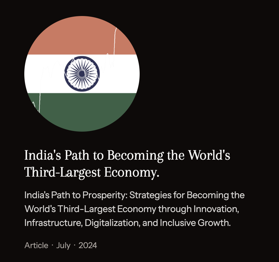 India's Path to Prosperity: Strategies for Becoming the World's Third-Largest Economy through Innovation, Infrastructure, Digitalization, and Inclusive Growth.