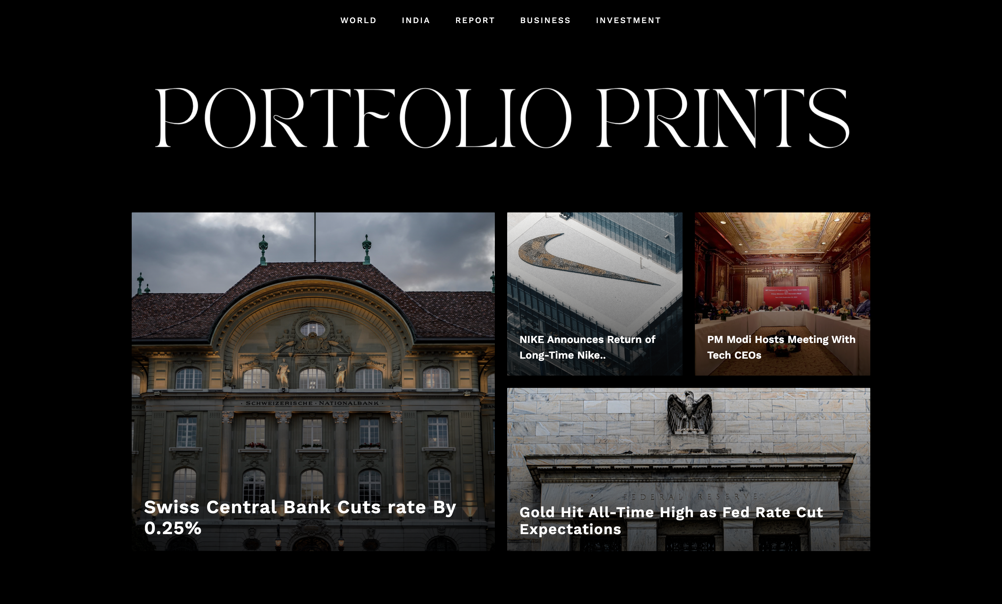 We Provide Articles And News in Categories like World Market, Indian Market, Business And Investment Which Helps You keep Your Eye on every Sector Which Helps you to be More Productive in your Work. To be Part of Portfolio Prints Family Join Us Now.